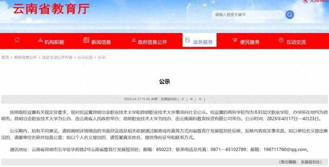 七彩云南昆明4月22日新媒体专电(简南俊)近日,云南省教育厅发布公示,云南昆明新增两所本科层次职业学校,其中,昆明冶金高等专科学校位列其中。消息显示,升格为本科职业学校的昆明冶金高等专科学校更名为“昆明冶金职业技术大学”,新名称引发网友热议。